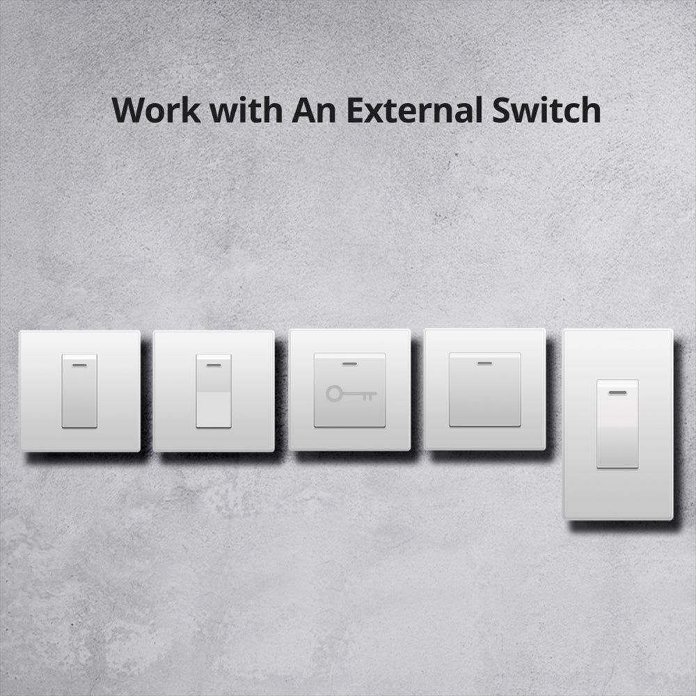Two-Way Retrofit: Installs discreetly inside the switch box, adding smart control while your original wall switch still works like normal.