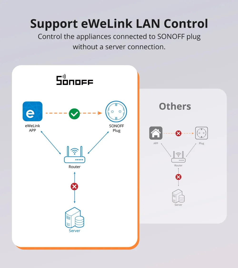 eWeLink LAN & Voice Control: Control using the app locally, even without internet, or by voice via Alexa or Google Assistant.