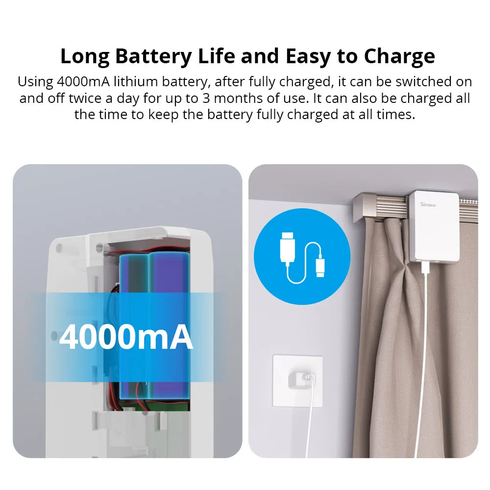 Multiple Control Options: You can use eWeLink App to control your curtains, schedule a time, set the smart scenes in the APP to interact your curtains with other smart devices, or use remote control(one remote to control multiple curtain motors or multiple remotes to control one curtain motor),voice control is also supported.
