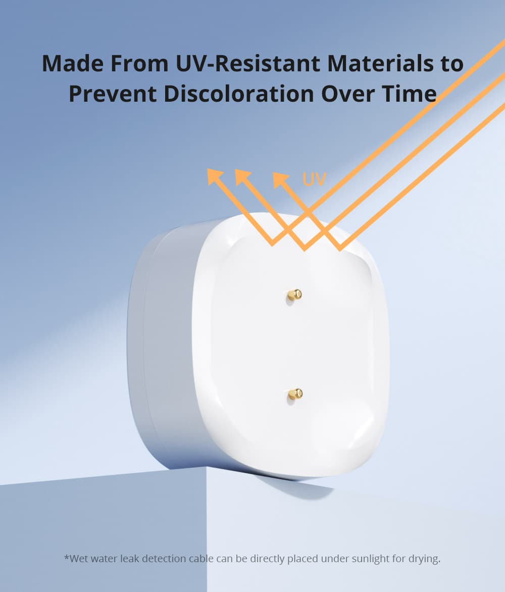 Precision Leak Detection: Raised gold-plated probes detect water as shallow as 0.5 mm, even on metal surfaces, without false triggers. Its concave sensing design instantly picks up drips and pools.