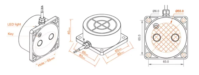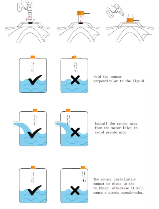 Signal: 2.4G Wi-Fi | Level Range: 0.1-4m | Input Power: 100-240V AC to 5V DC | Power Adapter Cable Length: 1m | Sensor Cable: 3m | Sensor Size: 80x80x40mm